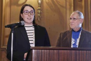 Prof. Savinell acknowledged the 2025 Outstanding Student Chapter Award winner—Case Western Reserve University, represented by students Desiree Mae Prado and Yuanman Ma—and Student Chapter of Excellence winner—Lewis University, represented by Kiersten Smith. Desiree Mae, Yuanman, and Kiersten then spoke about the strength of their chapters which connect them to the larger ECS community and provide opportunities to network and collaborate with other emerging scientists in their fields. (The University of Washington, which was also named a 2025 Student Chapter of Excellence, will be acknowledged at the 249th ECS Meeting in Seattle, WA, in May 2026.)