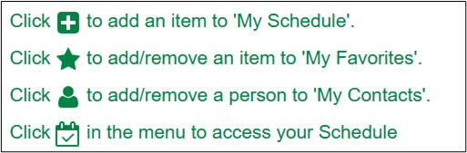 • Click the Plus or Star icons to save sessions, presentations, or events.
